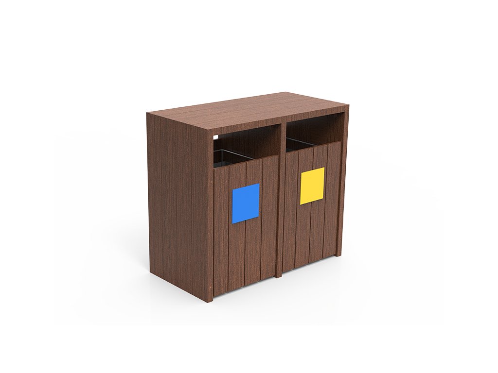 Odpadkový koš z materiálu ReBnew s dvířky pro snadnější výměnu sáčku disponuje otevíráním po obou stranách. Šrouby jsou z nerezové oceli.