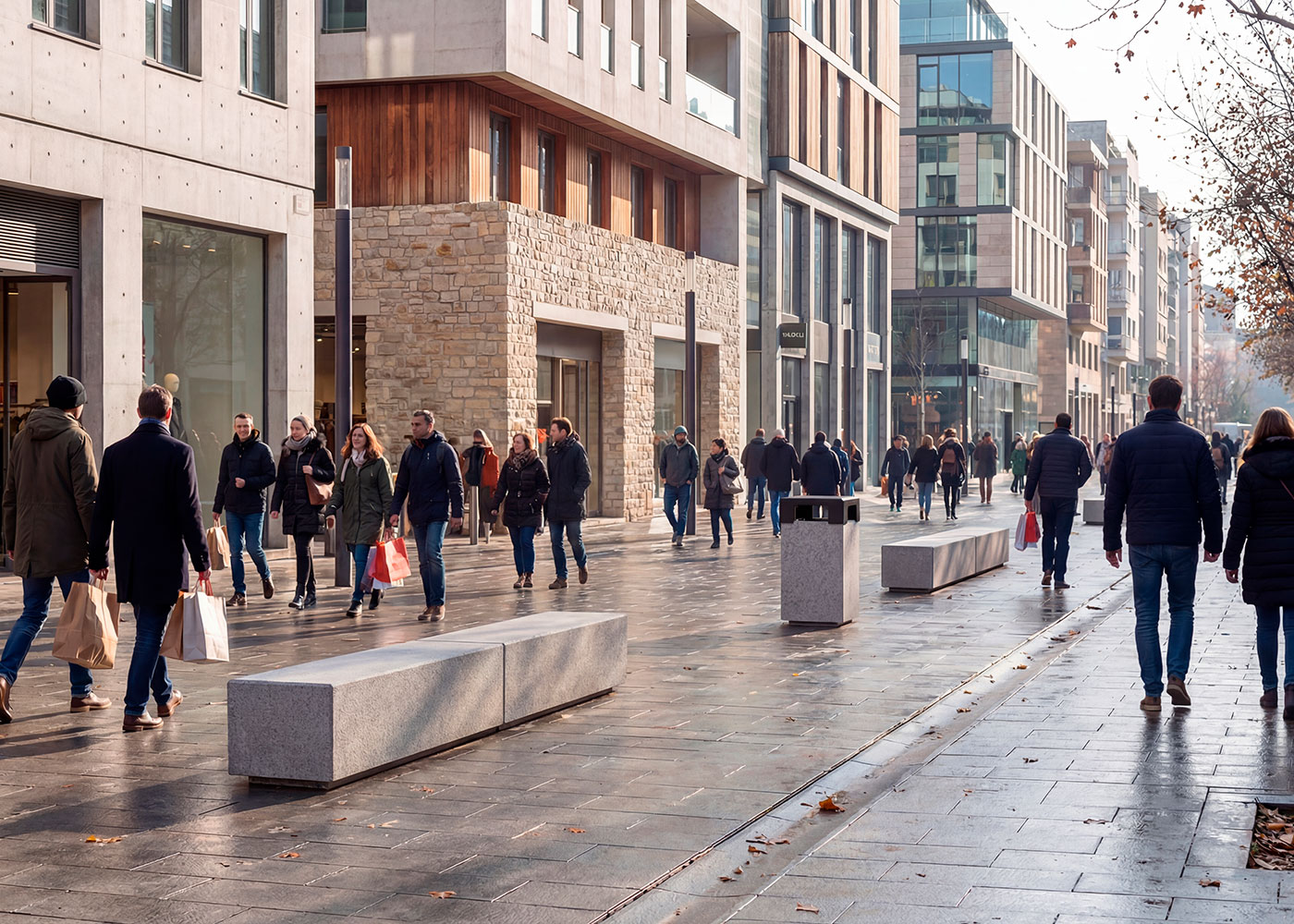 Betonová lavička Kube UM372 je stylový a mimořádně odolný prvek městského mobiliáře. Minimalistické rovné linie a žulově šedý povrch z ní dělají univerzální řešení do parků, náměstí, obchodních center i privátních exteriérů.
