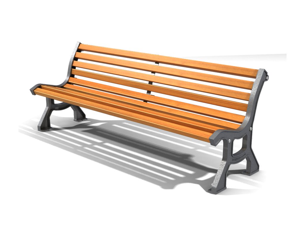 Bytelná litinová dlouhá lavice s nohami z tvárné litiny ošetřenými ochranným procesem Ferrus, který zaručuje vysokou odolnost proti korozi.
